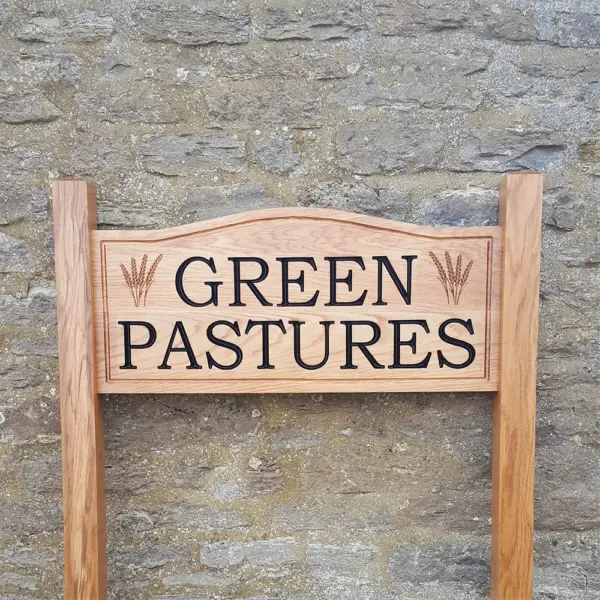 Bow top signs add style and elegance to a house sign. They also display motifs really well. Just let us know what you would like and we will show you a design. Or send us your motif design and we will work with that.